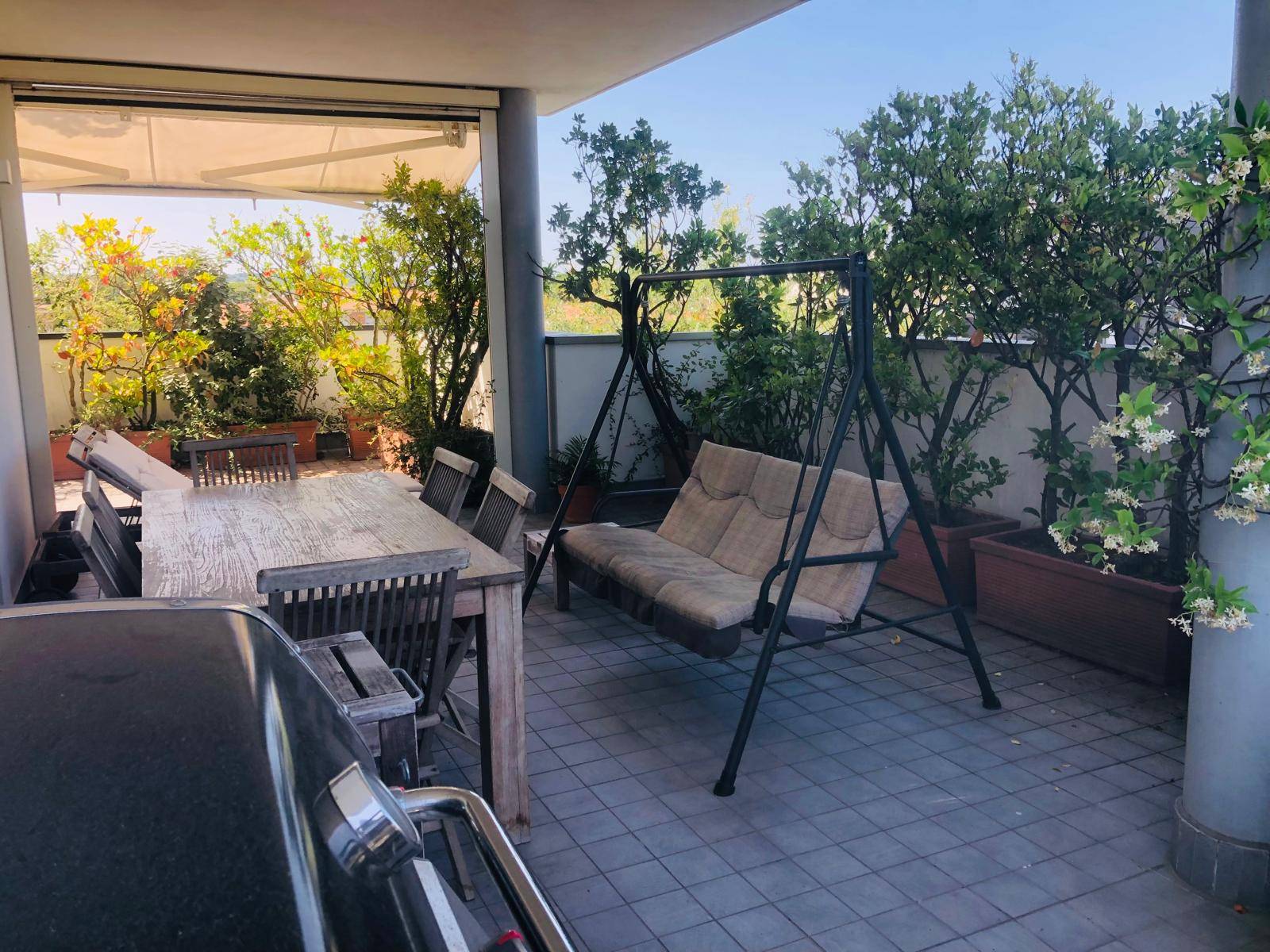 €430.000. Fano, in tranquilla zona residenziale, a pochi minuti dal centro cittadino e da tutti i servizi, vendiamo luminoso ATTICO con ampi terrazzi dai quali è possibile godere di una splendida vista panoramica. L'immobile, dalle ampie metrature, è ubicato al 3° ed ultimo piano di una signorile palazzina con ascensore di recente costruzione. L'abitazione, ottimamente rifinita, si compone di: ingresso su luminoso salone con zona pranzo ed accesso diretto al grande terrazzo loggiato vivibile, cucina abitabile con accesso al terrazzo, disimpegno, camera matrimoniale, camera doppia con accesso al terrazzo loggiato, cameretta/studio con accesso allo stesso terrazzo, 2 bagni completi di cui uno con vasca e uno con doccia entrambi con accesso al terrazzo. Garage. Cantina. L'abitazione è dotata di tutti i sistemi di domotica di ultima generazione. Parquet zona giorno e zona notte. Tapparelle elettriche. Tende da sole automatizzate. Sistema d'irrigazione automatica. Sistema d'allarme. Giardino condominiale. Riscaldamento e raffrescamento centralizzato. Buona la classe energetica anche se in fase di realizzo. Rif.: V/3306