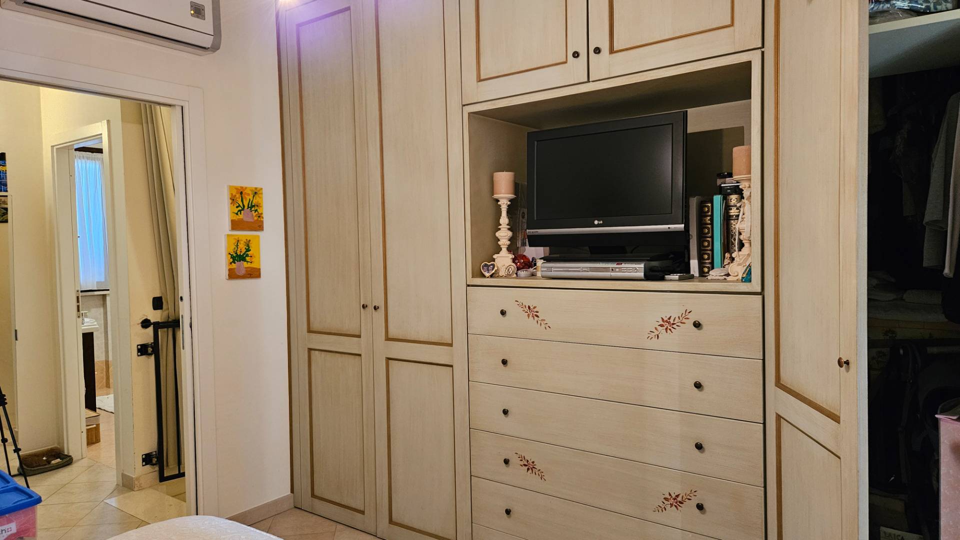 € 160.000. Villanova, Comune di recente espansione edilizia, cittadina ordinata e ben servita e ben collegata alle principali arterie stradali, vendiamo VILLETTA A SCHIERA ubicata in zona centrale. L'abitazione, in signorile contesto residenziale di recente costruzione, è ben tenuto e si compone di: esclusivo ingresso indipendente da scoperto di proprietà, luminoso soggiorno con accesso al terrazzo, cucina a vista con accesso diretto al balcone, antibagno e bagno finestrato con doccia completa di sauna ed idromassaggio al piano terra; disimpegno, camera matrimoniale con ampia cabina armadio e accesso al balcone, cameretta con accesso ad altro balcone e bagno finestrato con vasca al 1°piano raggiungibile da comoda scala interna rifinita da ringhiera in ferro battuto lavorata a mano. Completa la proprietà garage doppio con basculante elettrica al piano seminterrato. Sistema di aria condizionata zona giorno e zona notte. Infissi in legno con doppio vetro camera completi di zanzariere. Aspirapolvere centralizzato. Cappotto esterno. Antisismica. Riscaldamento autonomo. Classe energetica in fase di realizzo. Rif.: A/378