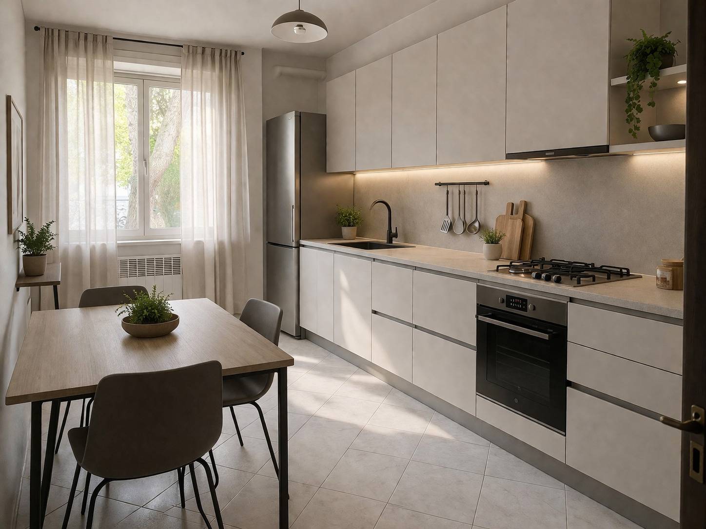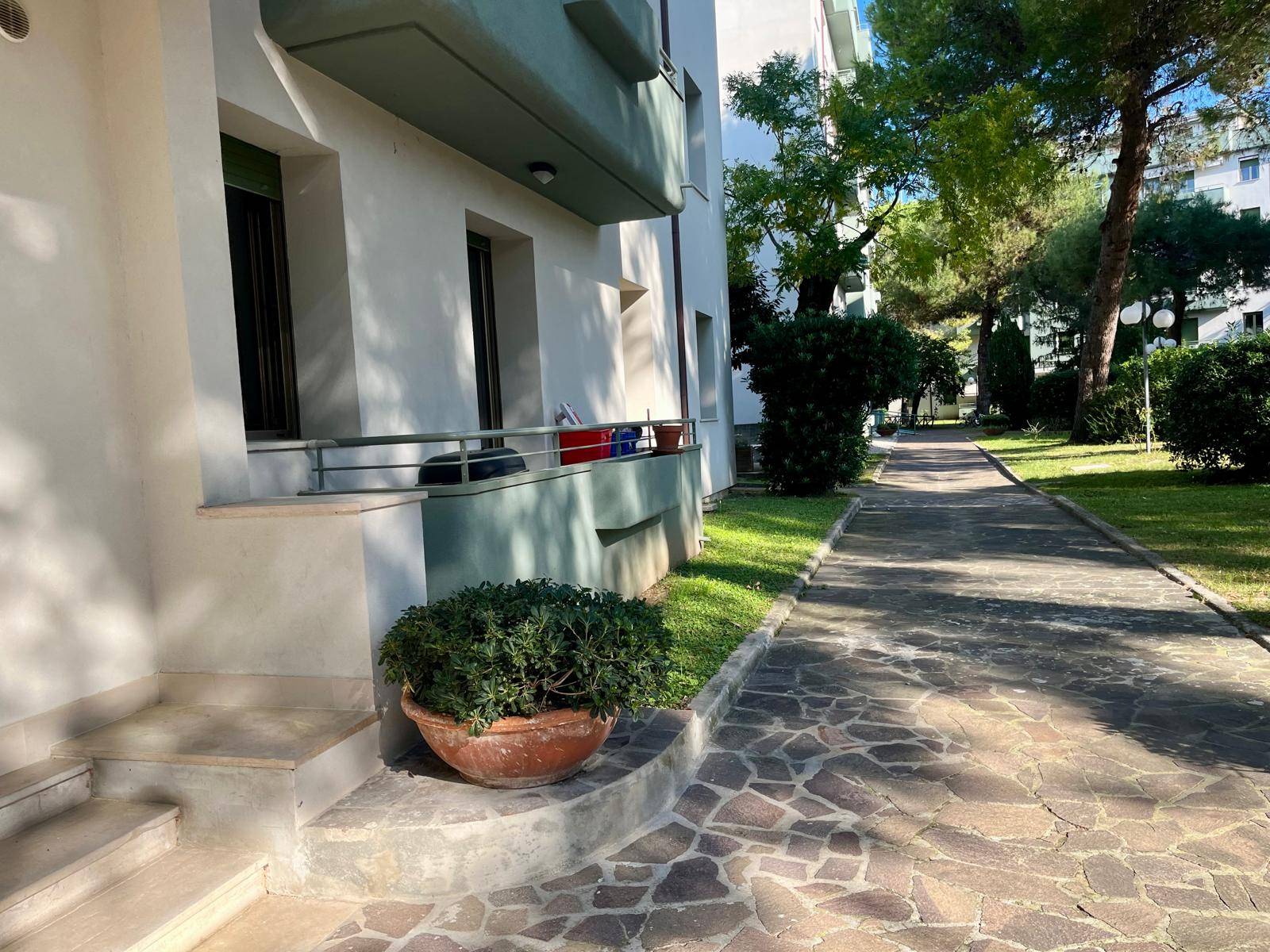 € 220.000,00 . Fano, in zona centrale, a pochi minuti dal Centro Storico e dal mare vendiamo ampio Appartamento in un signorile e confortevole complesso residenziale immerso nel verde. L'immobile è ubicato al piano rialzato di una signorile palazzina ed è così composto: luminoso soggiorno, cucina in muratura abitabile finestrata, comoda camera matrimoniale, camera media, lungo disimpegno, bagno finestrato con vasca, presente un balcone nella zona living ed a completare un garage di proprietà. Il pavimento è in ceramica, gli infissi sono nuovi in alluminio e vetro camera, sostituite le tapparelle e coibentato i cassettoni. Le spese condominiali sono di circa € 168,00 mensili comprensive di acqua e riscaldamento. Il fabbricato è stato completamente ristrutturato due anni fa circa con il 110% e gode di cappotto termico e nuova tinteggiatura. I garage dello stabile, sono stati coibentati e ritinteggiati ed il box di proprietà è dotato di colonnina per ricarica auto elettriche. L'immobile se pur necessiterebbe di alcune opere di ammodernamento, è pronto per essere vissuto. Vogliamo tuttavia darvi una lettura più moderna di questo confortevole Appartamento, allegando qualche foto creata con l'intelligenza artificiale che possa aiutarvi ad immaginare meglio gli spazi arredati. Classe energetica in fase di realizzo. RIF: V/3463